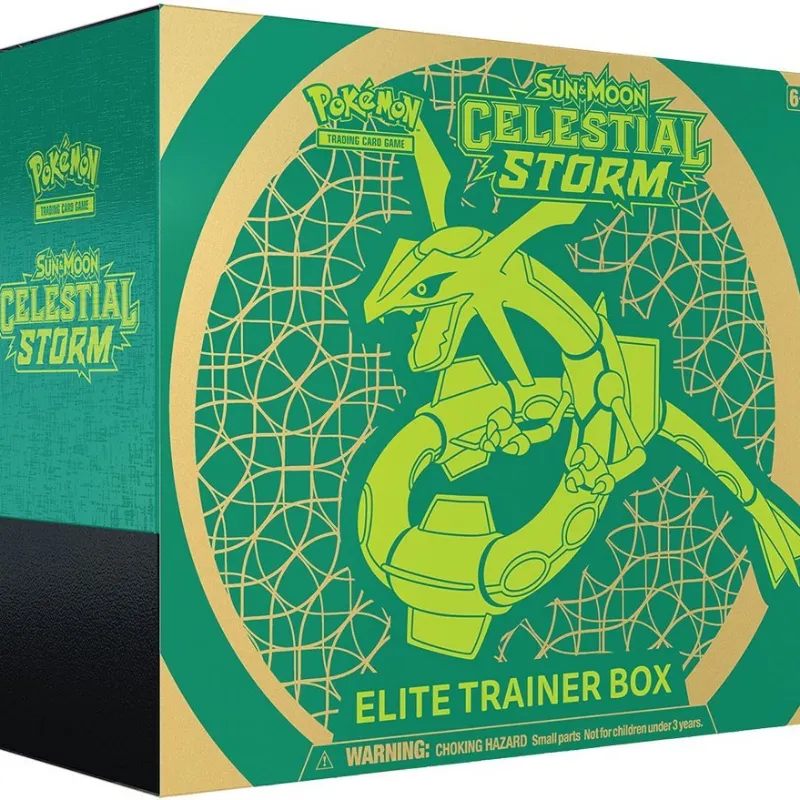 La Caja de Entrenador de Élite (ETB) Tormenta Celestial es el accesorio definitivo para jugadores competitivos. Incluye dados, marcadores de condición, fundas exclusivas y varios sobres de expansión, además de una guía para jugadores y una caja de coleccionista.